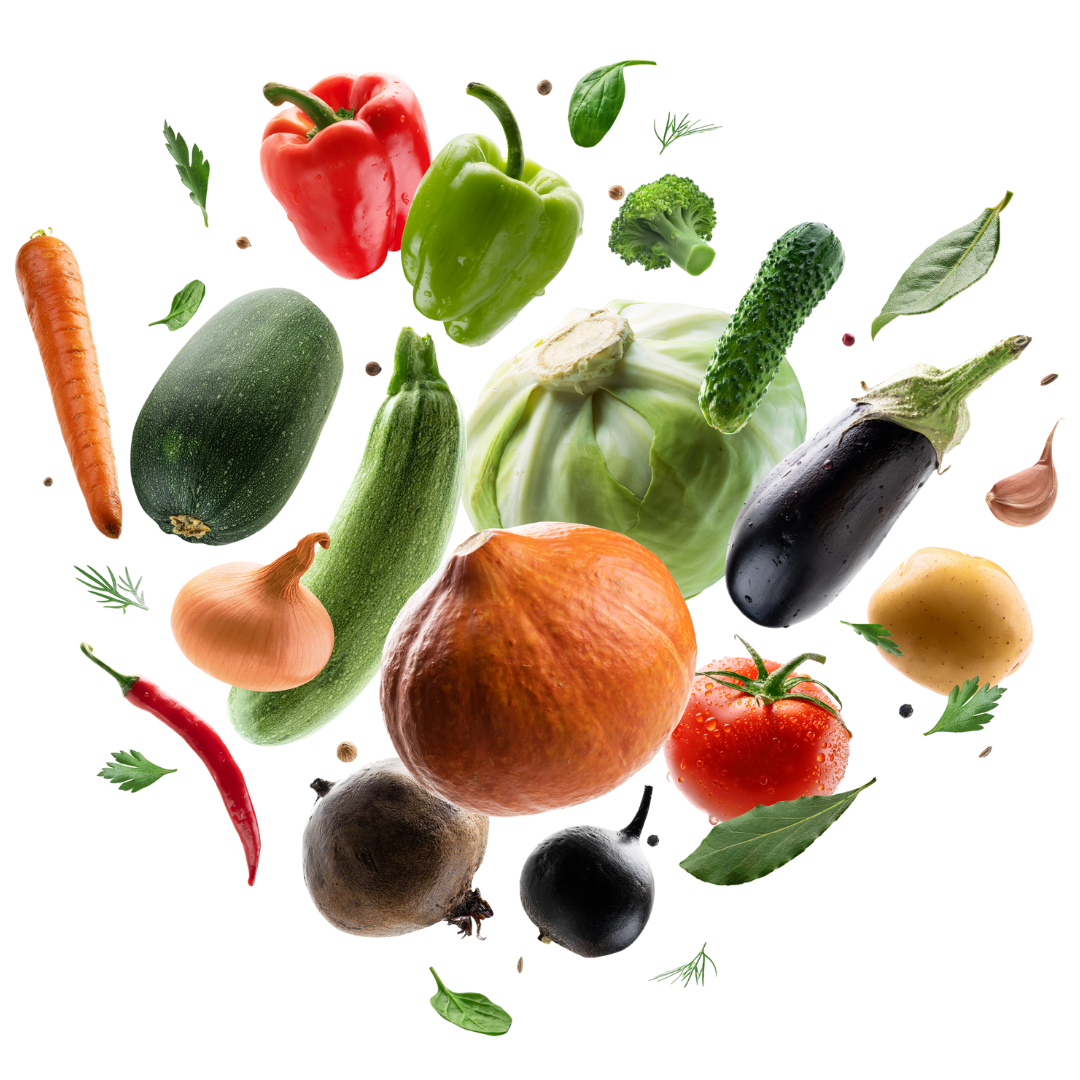 Carabassó, Tomàquet , Pebrot verd italià, Cogombre, Ceba tendra, Patata, Albergínia Negre, Mongeta.